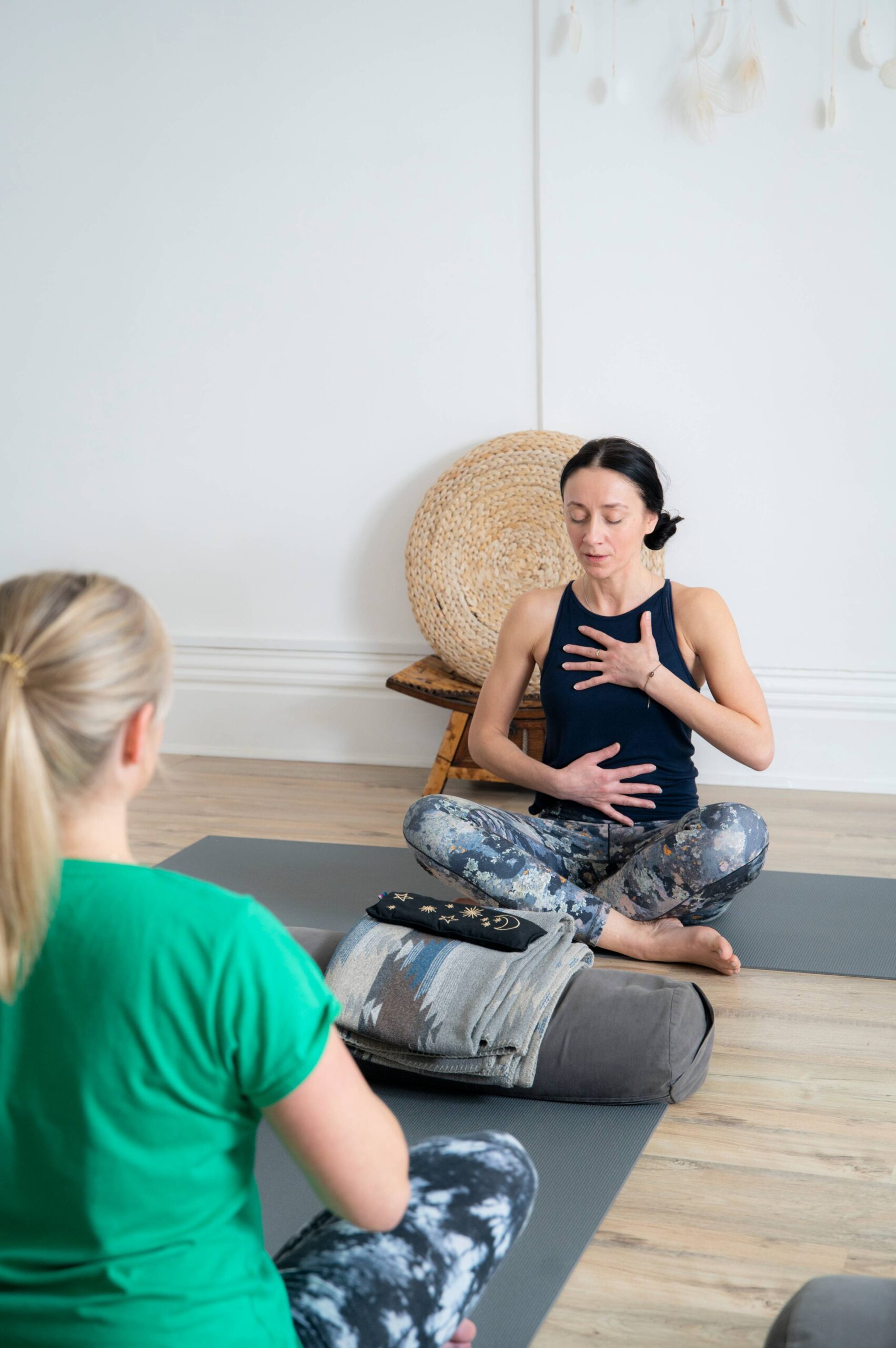 Comfortable sports clothing, usually a pair of leggings or comfortable sports trousers and a top/t-shirt. I highly recommend bringing a jumper and a warm set of socks for a cosy relaxation at the end. A yoga eye pillow or a sleeping eye mask is a lovely addition to the nidra part.